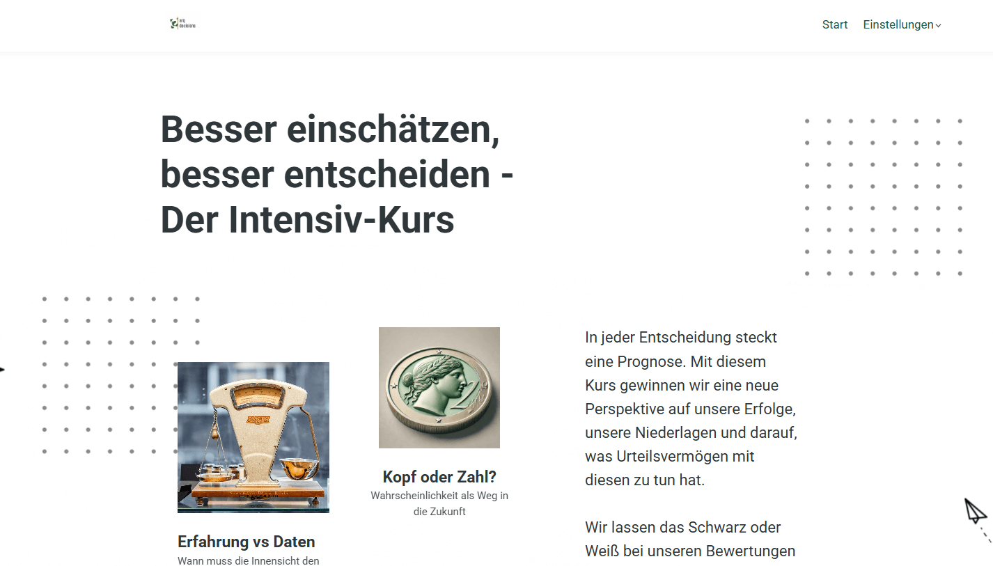 Wie so oft schafft der es in die Top 10%, wer sich einmal intensiv mit dem Thema beschäftigt. In fünf Hauptmodulen vermitteln wir in einem self-paced Online-Training die Grundlagen, die erfolgreiche Entscheider beherzigen.